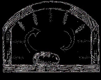 De interne convectiestroom van de oven zorgt ervoor dat de warmte van de ovenwanden naar het eten wordt geleid. Dit helpt om de warmte in de oven overal gelijkmatig te houden. Ook voorkomt de natuurlijke convectiestroom het uitdrogen van het voedsel, waardoor het voedsel in zijn eigen vocht gegaard kan worden. Dat is niet mogelijk in de hedendaagse ovens.