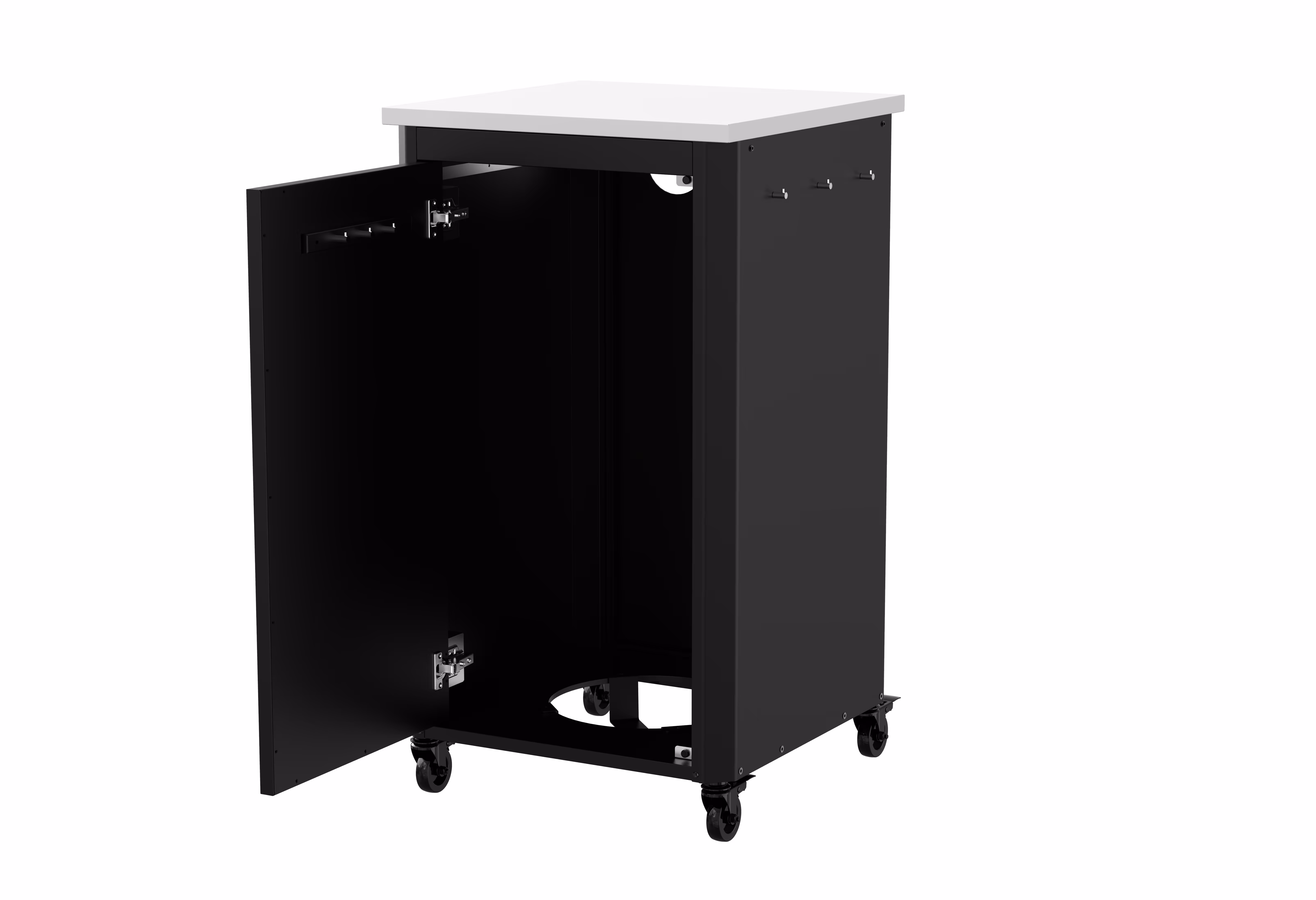 Deze buitenkeuken is vervaardigd uit verzinkt en gepoedercoat staal, wat resulteert in een robuuste en weerbestendige constructie. Het werkblad is stevig en gemakkelijk schoon te maken — ideaal voor intensief buitengebruik.