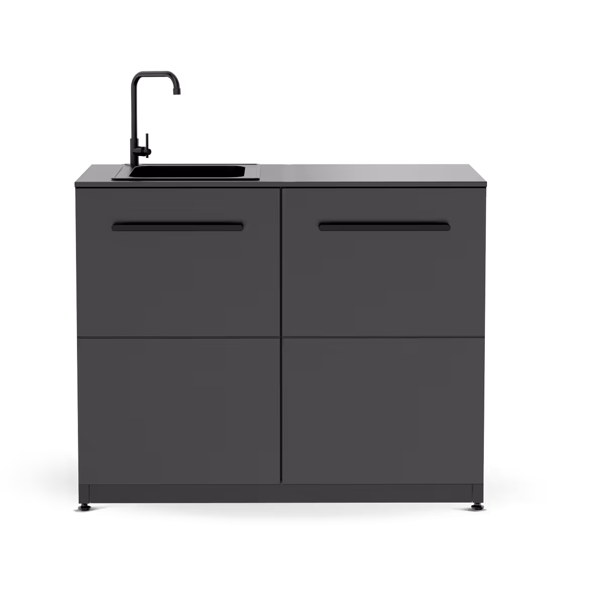 Het ruime werkblad rondom de gootsteen geeft genoeg plek om ingrediënten klaar te zetten en te verwerken, waardoor je optimaal gebruikmaakt van je buitenkeuken. De verstelbare poten zorgen ervoor dat de module altijd stabiel en waterpas staat, zelfs op een ongelijke ondergrond.