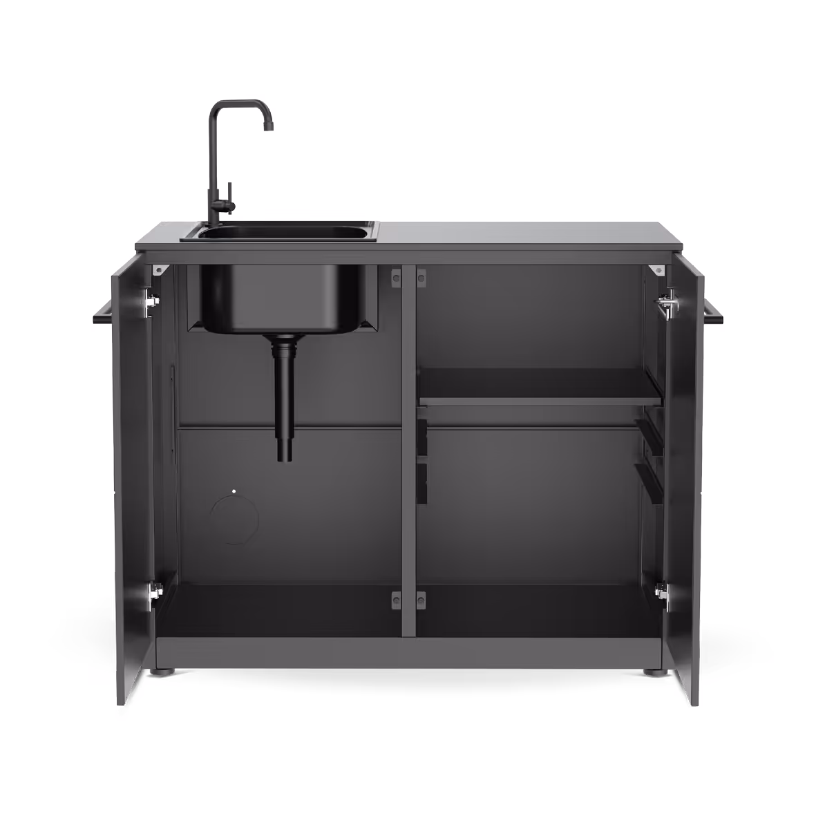 Deze module is speciaal ontworpen om jouw buitenkookervaring te verbeteren. Met de ingebouwde gootsteen heb je direct toegang tot water voor het afspoelen van groenten, schoonmaken van handen of gereedschap en het afhandelen van voorbereidingen zonder naar binnen te hoeven lopen. Dit maakt je workflow tijdens het barbecueën en outdoor koken een stuk soepeler en sneller.