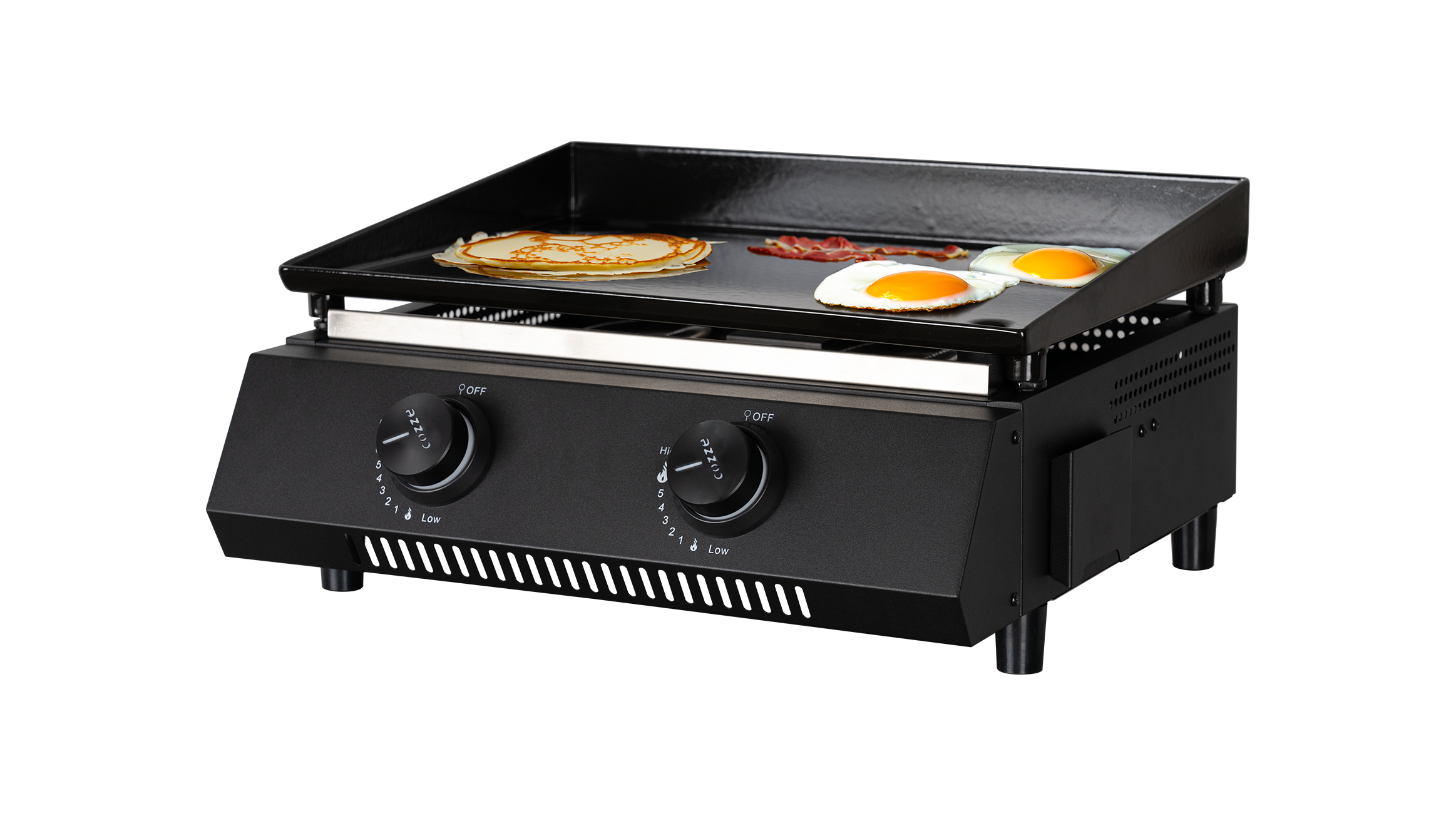 De Cozze G‑400 plancha is een compacte en krachtige gasplancha die ideaal is voor buitenkoken op een vlakke kookplaat. Deze plancha maakt het eenvoudig om vlees, vis, groenten, eieren en zelfs pannenkoeken perfect te bereiden — direct op een gelijkmatig verwarmd oppervlak.
