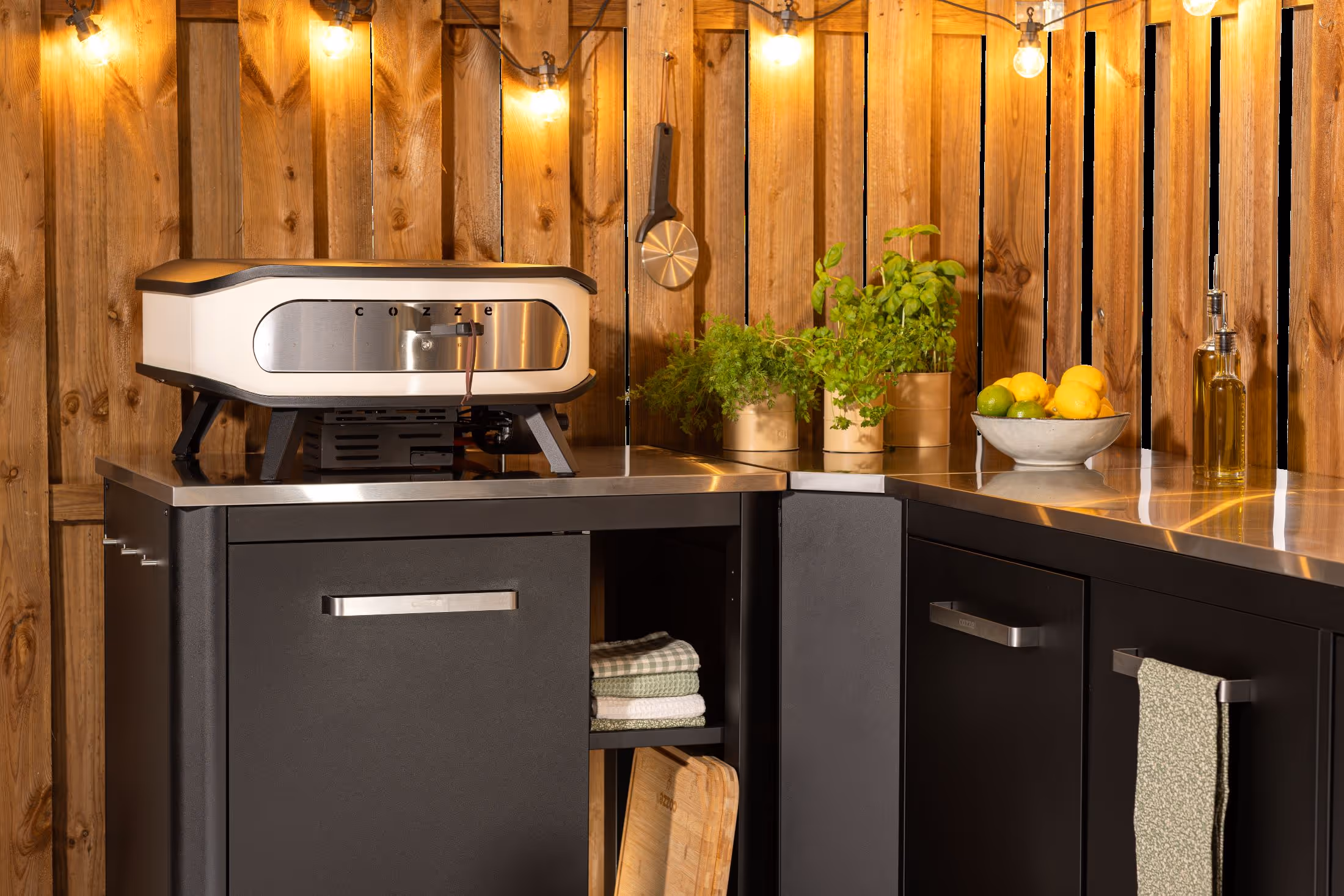 Ondersteuning voor BBQ, plancha of pizzaoven – geschikt om kookapparatuur of prep-items aan te sluiten